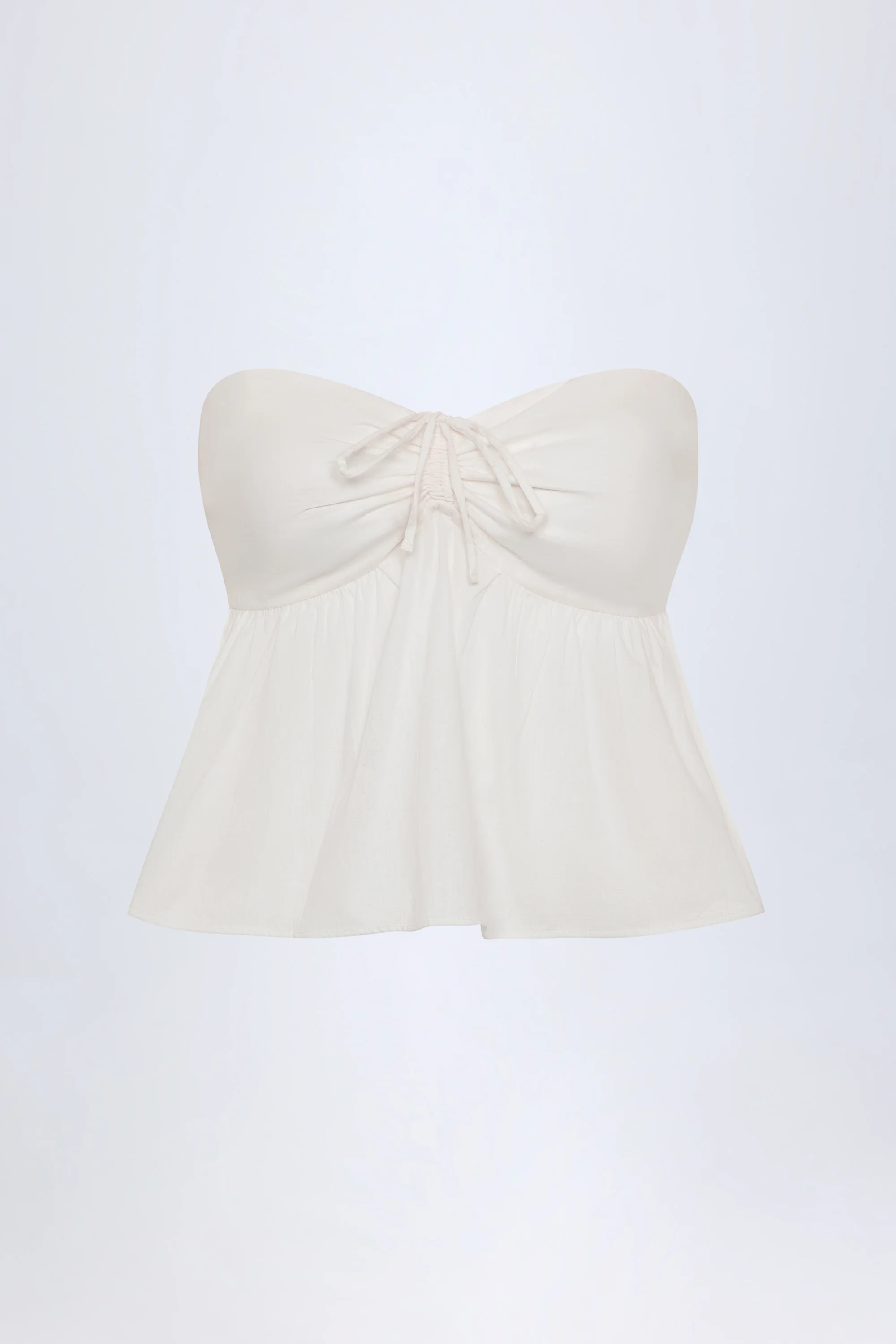 Tie-Front Strapless Cotton-Poplin Crop Top in White