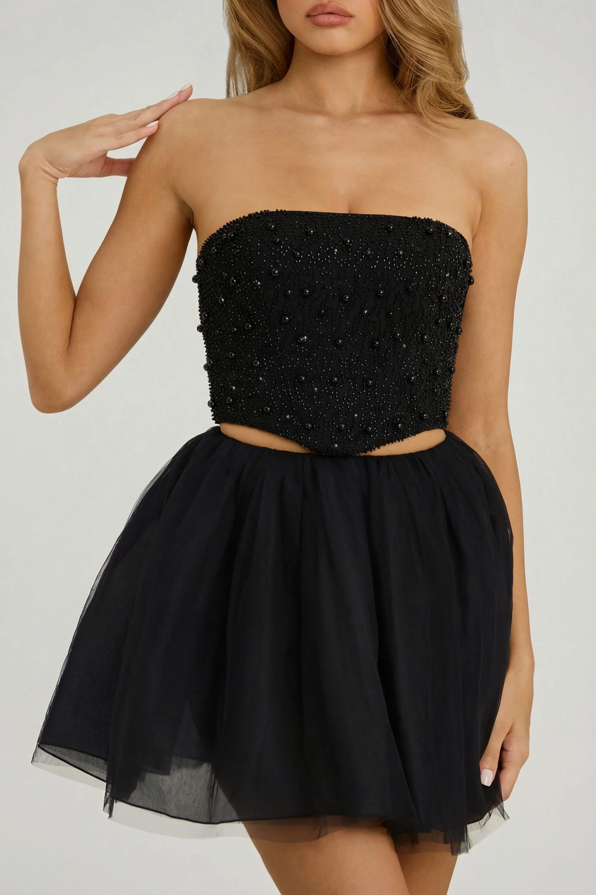 Create a statement two-piece with the Cosima mini ballet skirt. A flattering full skirt designed in premium tulle fabric with an organza and jersey underskirt, Cosima has an elegant, balletcore aesthetic that pairs perfectly with the Adeline strapless corset top.